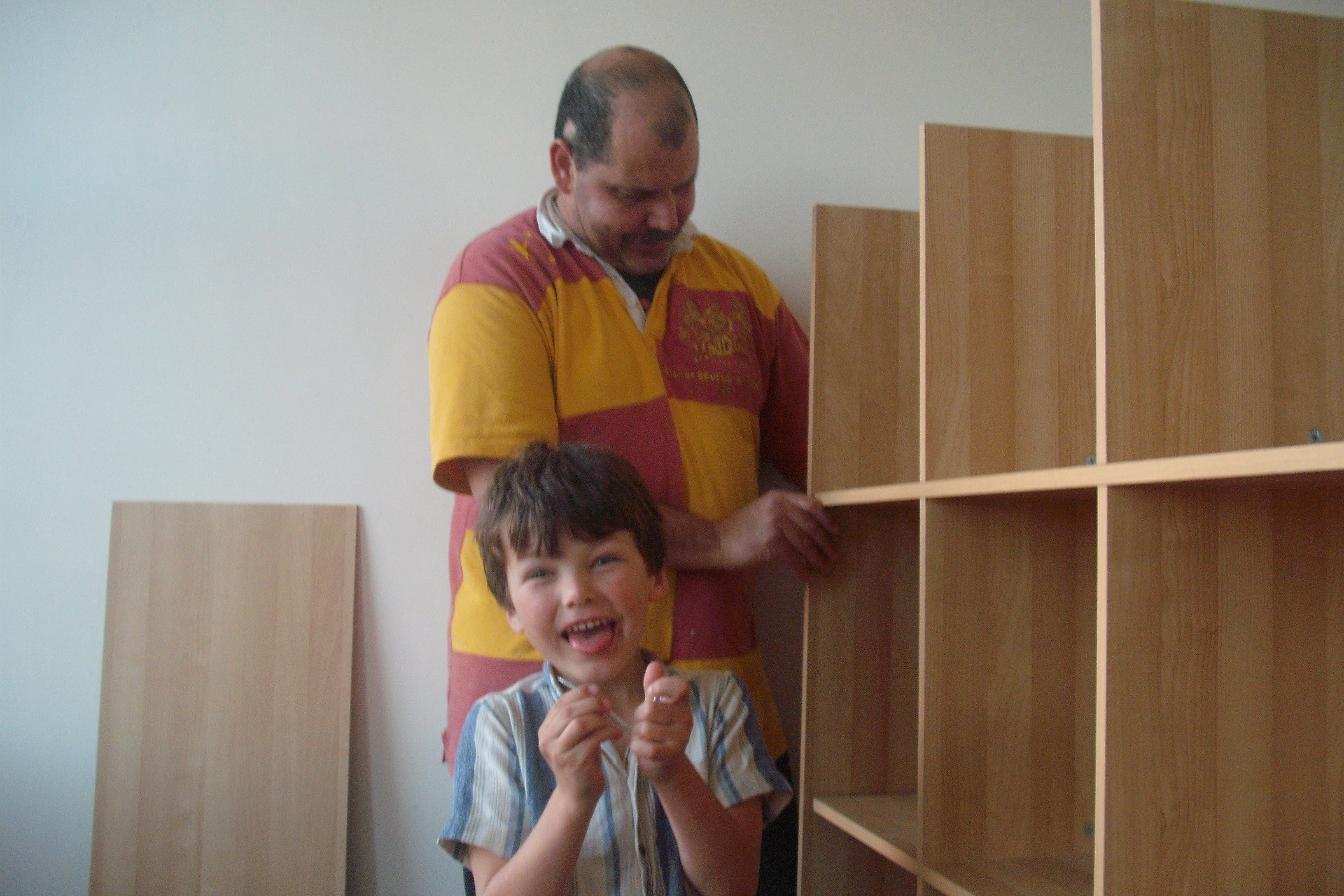 Moved into our first office out of the house. Exciting times. Glenn and Lewis putting up shelves.