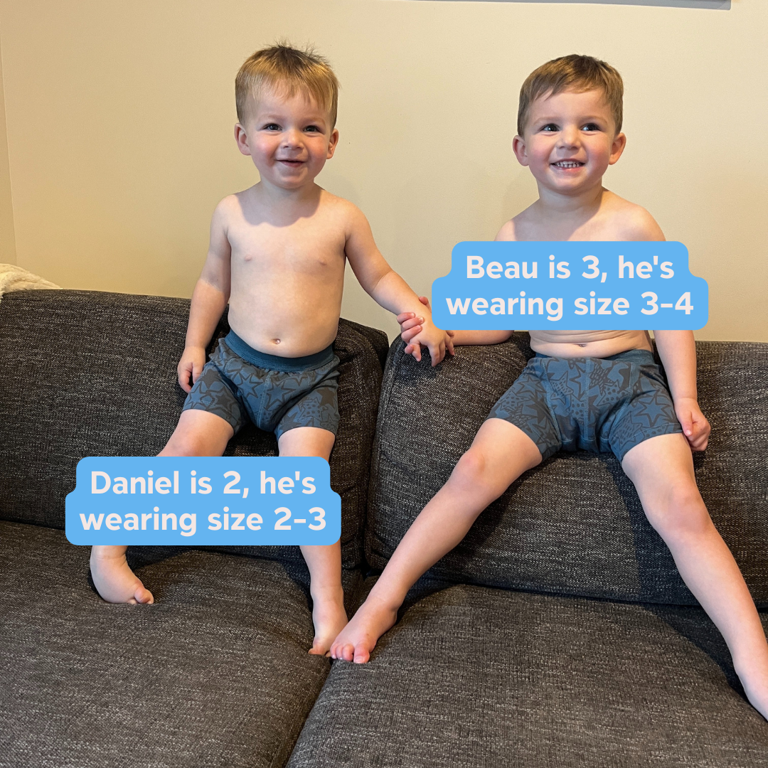 We recently redesigned our sizing to perfectly align with other child underwear brands. The age below is just a rough guide.  Please take measurements for sizing.  Kids come in all shapes and so age alone is not also an accurate way to buy underwear.